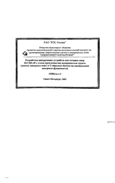 | Название стандарта | Разработка анкерующих устройств для оттяжек опор ВЛ 500 кВ с узлом крепления над поверхностью грунта (замена анкерных плит и U-образных болтов на специальные анкерные фундаменты). |