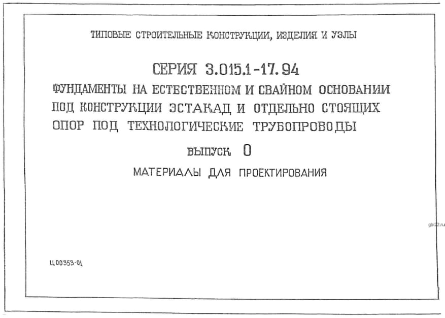 | Название стандарта | Фундаменты на естественном и свайном основании под конструкции эстакад и отдельно стоящих опор под технологические трубопроводы. |