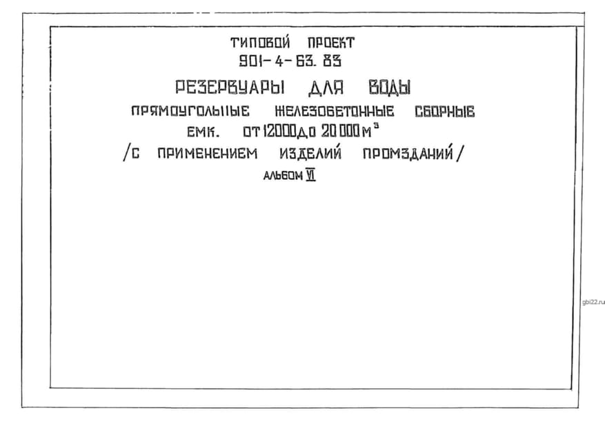 | Название стандарта | Резервуары для воды прямоугольные железобетонные сборные емкостью от 12000 до 20000 м3 (с применением изделий промзданий). |