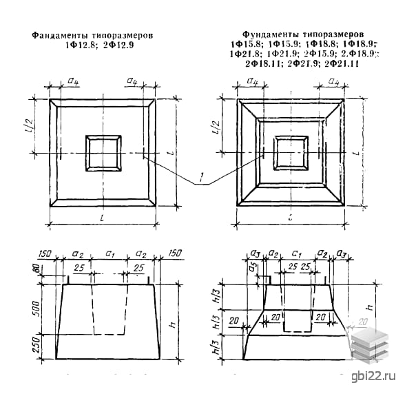 Типовые железобетонные фундаменты маркируются буквенно-цифровым кодом, отражающим их параметры: