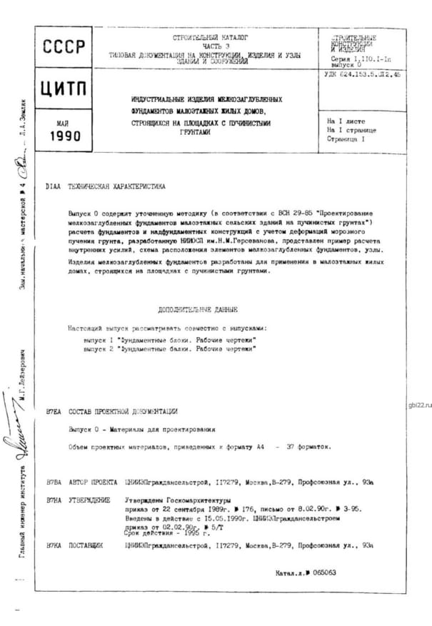| Название стандарта | Индустриальные изделия мелкозаглубленных фундаментов малоэтажных жилых домов. строящихся на площадках с пучинистыми грунтами. |