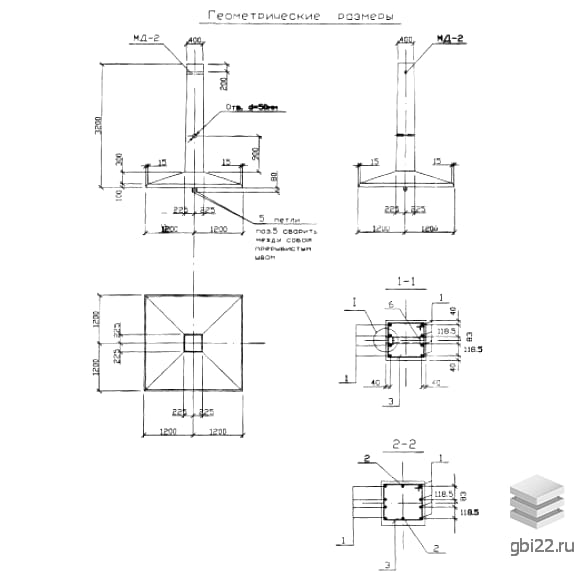 Закладная деталь в верхней части фундамента изготавливается из полосовой стали марки С255. Приварка осуществляется электродами марки 346А. Для упрощения подъема и монтажа в конструкции предусмотрена строповочная петля из гладкой стали класса AI диаметром 20 мм.