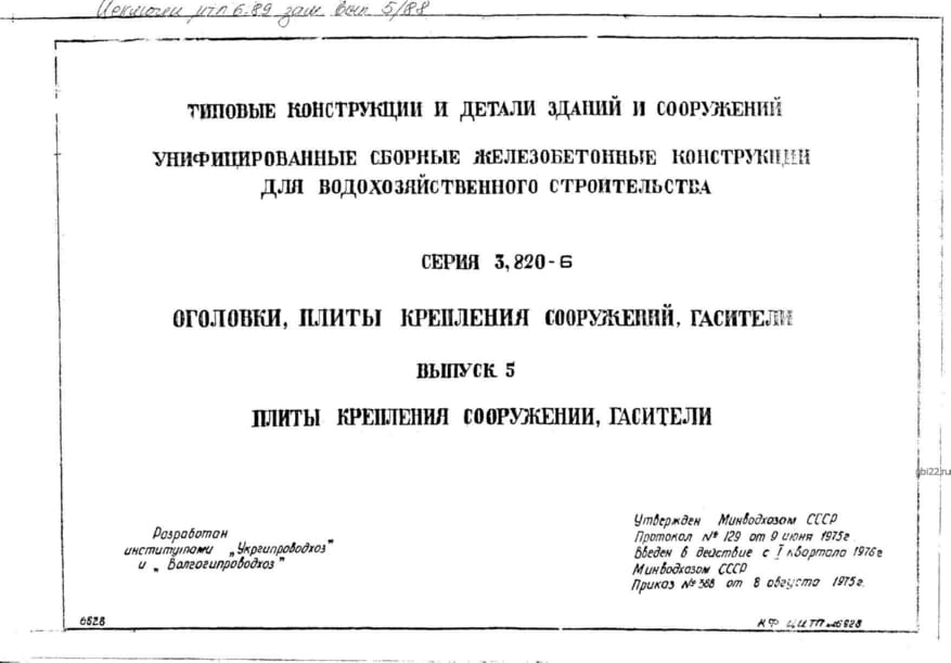 | Название стандарта | Оголовки, плиты крепления сооружений, гасители. |