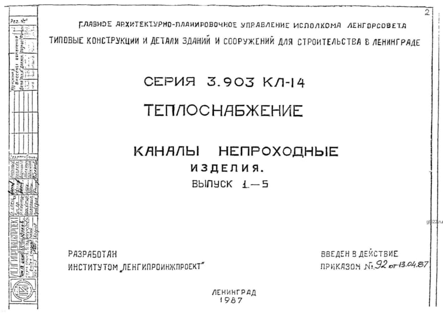 | Название стандарта | Теплоснабжение. Каналы непроходные. Изделия. |