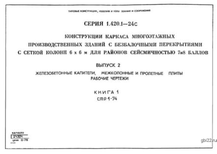 | Название стандарта | Конструкции каркаса многоэтажных производственных зданий с безбалочными перекрытиями с сеткой колонн 6х6 м для районов сейсмичностью 7 и 8 баллов. |