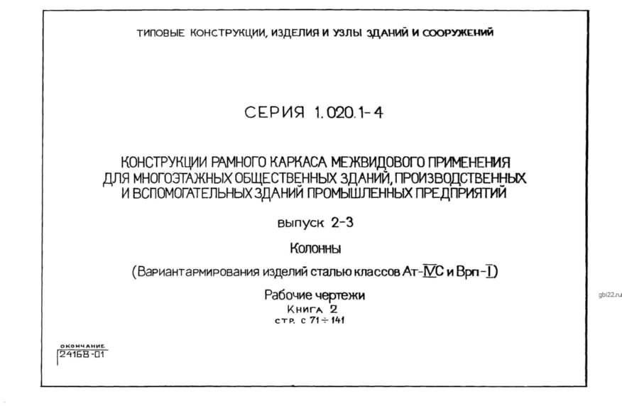 | Название стандарта | Конструкция рамного каркаса межвидового применения для многоэтажных общественных зданий, производственных и вспомогательных зданий промышленных предприятий. |
