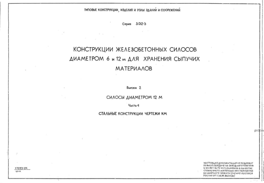| Название стандарта | Конструкции железобетонных силосов диаметром 6 и 12 м для хранения сыпучих материалов. |