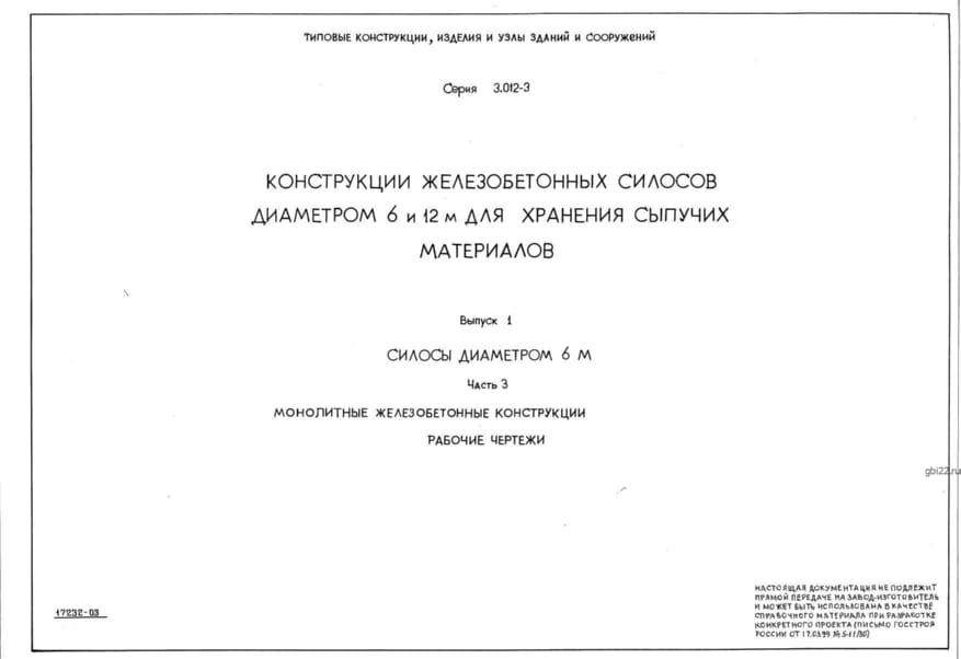 | Название стандарта | Конструкции железобетонных силосов диаметром 6 и 12 м для хранения сыпучих материалов. |