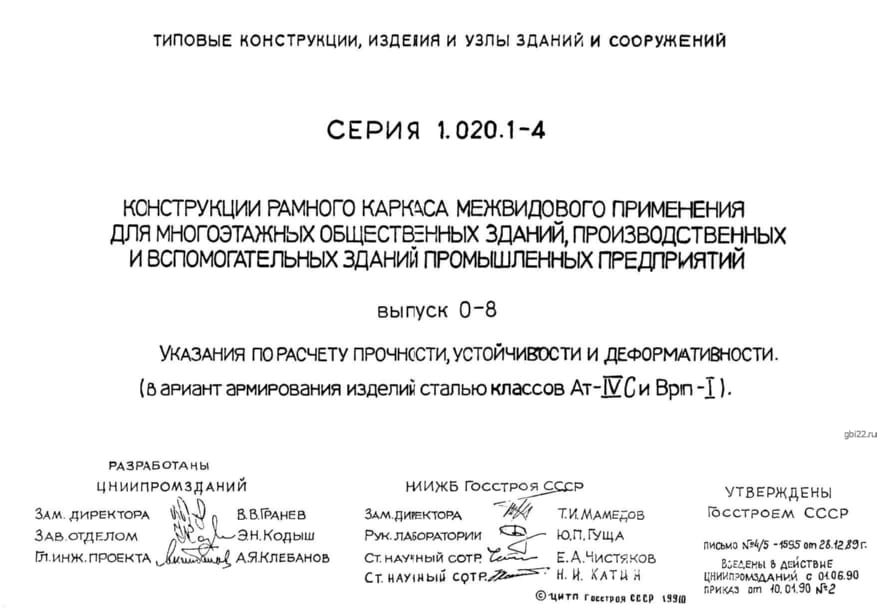 | Название стандарта | Конструкция рамного каркаса межвидового применения для многоэтажных общественных зданий, производственных и вспомогательных зданий промышленных предприятий. |