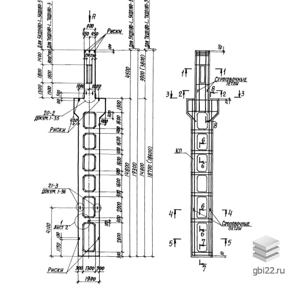 | Название стандарта | Колонны железобетонные двухветвевого сечения с проходами в уровне крановых путей для одноэтажных производственных зданий высотой 15,6; 16,8 и 18,0 м с мостовыми опорными кранами грузоподъемностью до 50 т. |