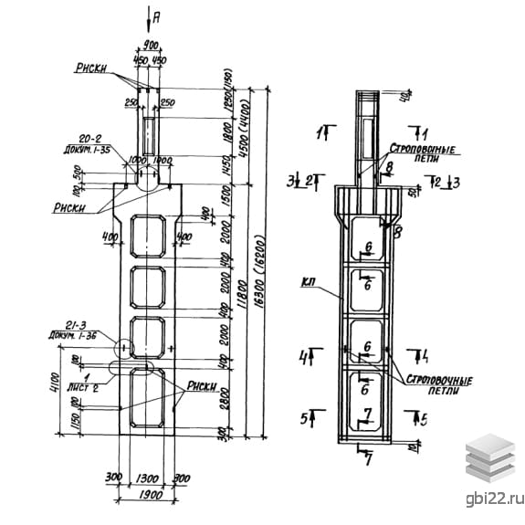 | Название стандарта | Колонны железобетонные двухветвевого сечения с проходами в уровне крановых путей для одноэтажных производственных зданий высотой 15,6; 16,8 и 18,0 м с мостовыми опорными кранами грузоподъемностью до 50 т. |