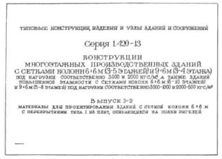 | Название стандарта | Конструкции многоэтажных производственных зданий с сетками колонн 6х6 м (3 - 5 этажей) и 9х6 м (3 - 4 этажа) под нагрузки соответственно 3000 и 2000 кгс/кв. м, а также зданий повышенной этажности с сетками колонн 6х6 м (6 - 10 этажей) и 9х6 м (5 - 8 этаже |