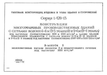 | Название стандарта | Конструкции многоэтажных производственных зданий с сетками колонн 6х6 м (3 - 5 этажей) и 9х6 м (3 - 4 этажа) под нагрузки соответственно 3000 и 2000 кгс/кв. м, а также зданий повышенной этажности с сетками колонн 6х6 м (6 - 10 этажей) и 9х6 м (5 - 8 этаже |