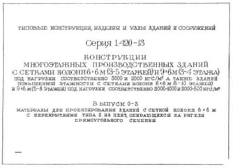 | Название стандарта | Конструкции многоэтажных производственных зданий с сетками колонн 6х6 м (3 - 5 этажей) и 9х6 м (3 - 4 этажа) под нагрузки соответственно 3000 и 2000 кгс/кв. м, а также зданий повышенной этажности с сетками колонн 6х6 м (6 - 10 этажей) и 9х6 м (5 - 8 этаже |
