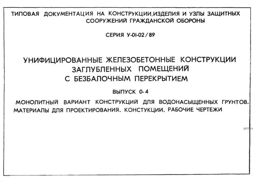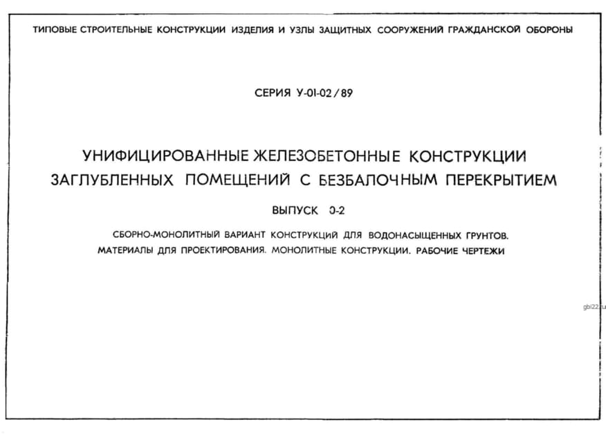 | Название стандарта | Унифицированные железобетонные конструкции заглубленных помещений с безбалочным перекрытием. |