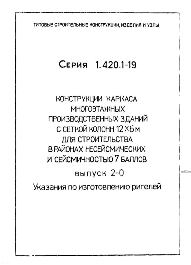 | Название стандарта | Конструкции каркаса многоэтажных производственных зданий с сеткой колонн 12х6 м для строительства в районах несейсмических и сейсмичностью 7 баллов. |