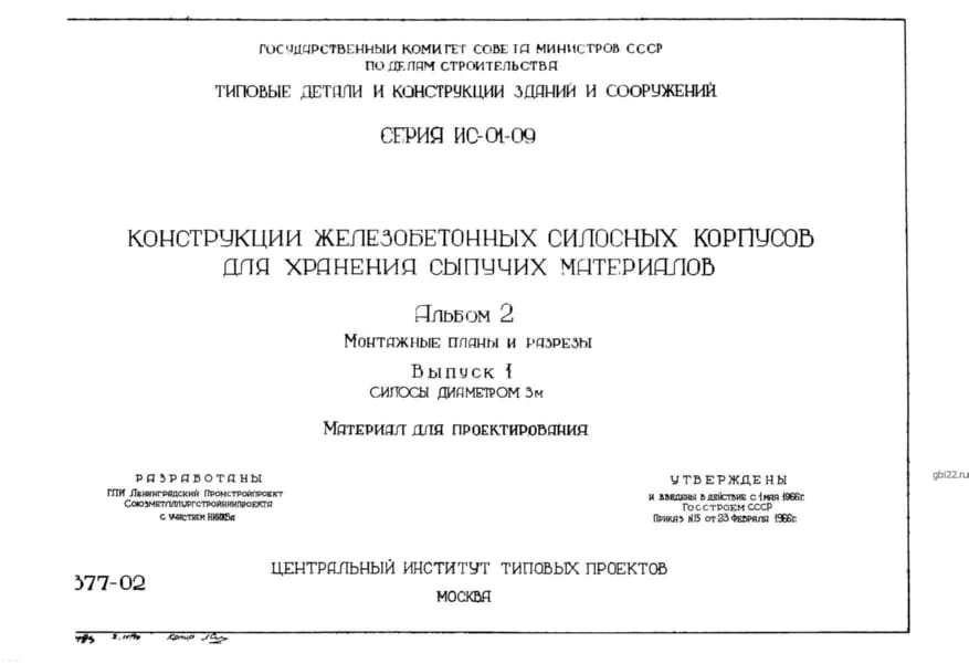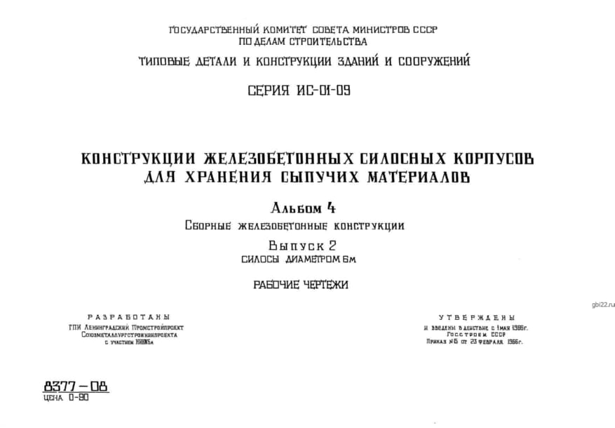 | Название стандарта | Конструкции железобетонных силосных корпусов для хранения сыпучих материалов. |