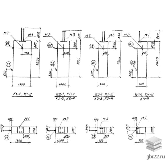 Колонны К 3-4 размеры: длина, мм.: 3000, ширина, мм.: 750, высота, мм.: 500, вес, кг.: 2800, марка бетона: М500. Изделия относятся к категории Колонны железобетонные-Колонны и изготавливаются по технической документации согласно серия У 01-01