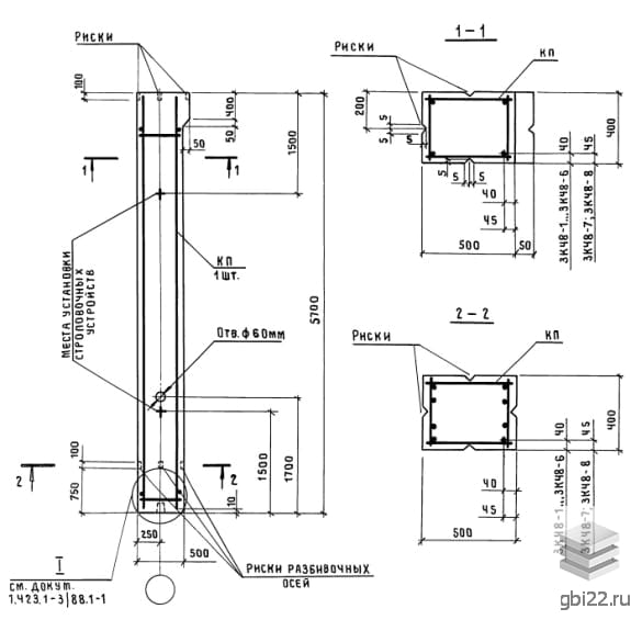 | Название стандарта | Железобетонные колонны прямоугольного сечения для одноэтажных производственных зданий без мостовых кранов высотой до 9,6 м. |