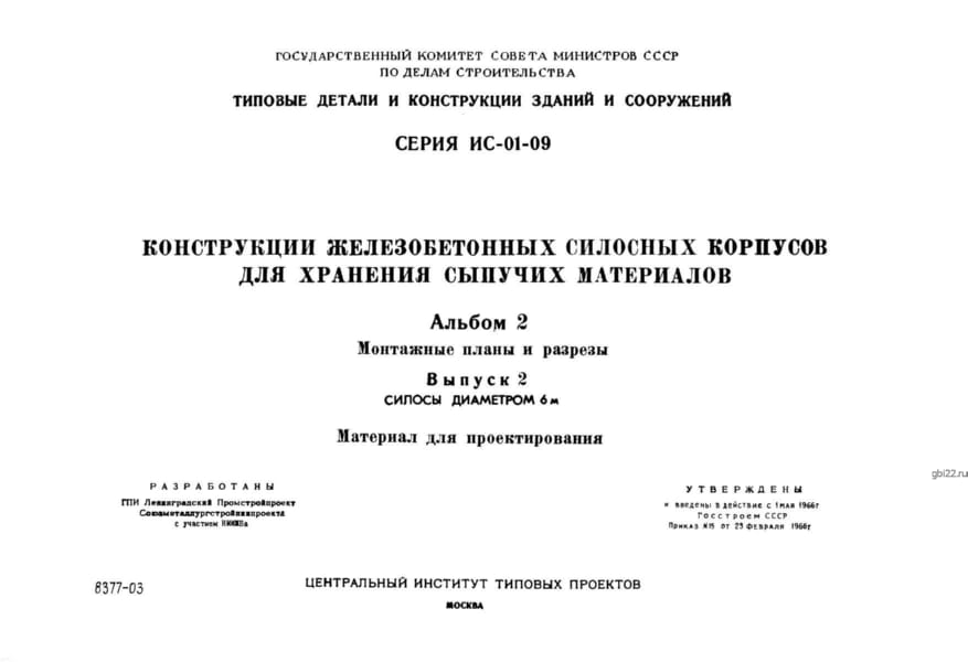 | Название стандарта | Конструкции железобетонных силосных корпусов для хранения сыпучих материалов. |