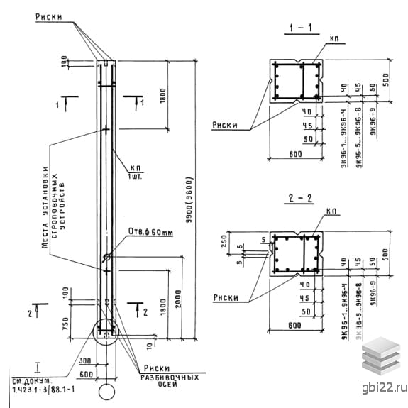 | Название стандарта | Железобетонные колонны прямоугольного сечения для одноэтажных производственных зданий без мостовых кранов высотой до 9,6 м. |