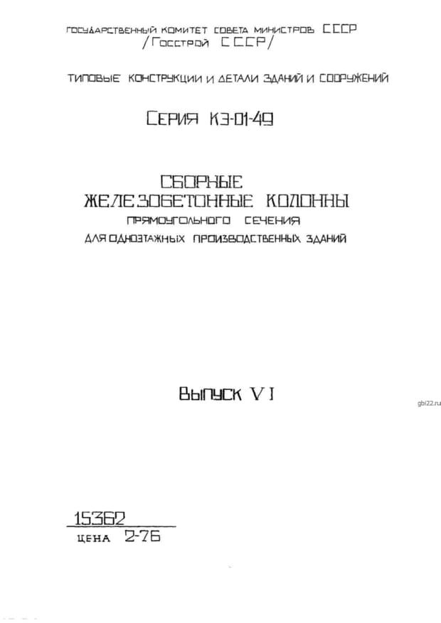 | Название стандарта | Сборные ж/б колонны прямоугольного сечения для 1-этажных производственных зданий зданий. |