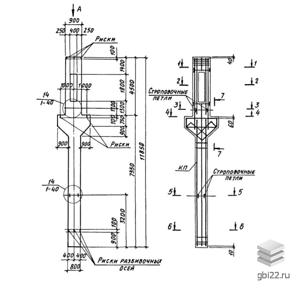 | Название стандарта | Колонны железобетонные прямоугольного сечения с проходами в уровне крановых путей для одноэтажных производственных зданий высотой 10,8-14,4 м, оборудованных мостовыми опорными кранами грузоподъемностью до 32 т. |