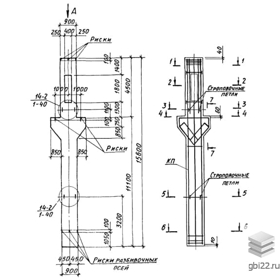 | Название стандарта | Колонны железобетонные прямоугольного сечения с проходами в уровне крановых путей для одноэтажных производственных зданий высотой 10,8-14,4 м, оборудованных мостовыми опорными кранами грузоподъемностью до 32 т. |