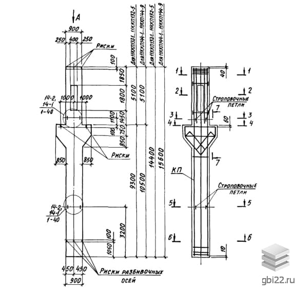 | Название стандарта | Колонны железобетонные прямоугольного сечения с проходами в уровне крановых путей для одноэтажных производственных зданий высотой 10,8-14,4 м, оборудованных мостовыми опорными кранами грузоподъемностью до 32 т. |
