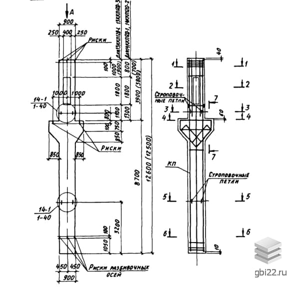 | Название стандарта | Колонны железобетонные прямоугольного сечения с проходами в уровне крановых путей для одноэтажных производственных зданий высотой 10,8-14,4 м, оборудованных мостовыми опорными кранами грузоподъемностью до 32 т. |