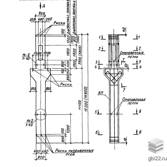| Название стандарта | Колонны железобетонные прямоугольного сечения с проходами в уровне крановых путей для одноэтажных производственных зданий высотой 10,8-14,4 м, оборудованных мостовыми опорными кранами грузоподъемностью до 32 т. |