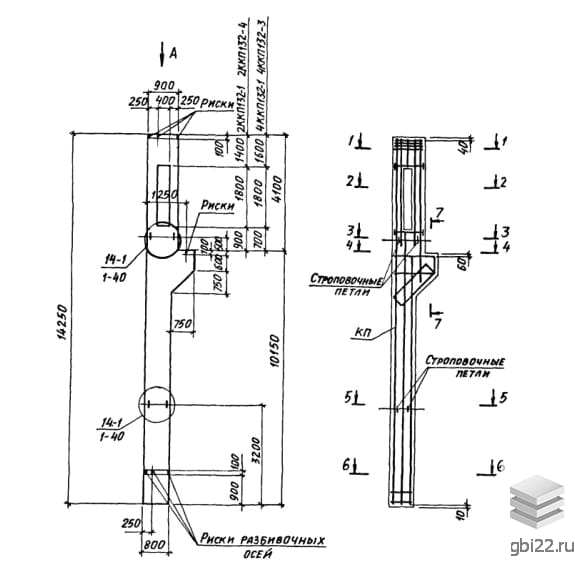 | Название стандарта | Колонны железобетонные прямоугольного сечения с проходами в уровне крановых путей для одноэтажных производственных зданий высотой 10,8-14,4 м, оборудованных мостовыми опорными кранами грузоподъемностью до 32 т. |