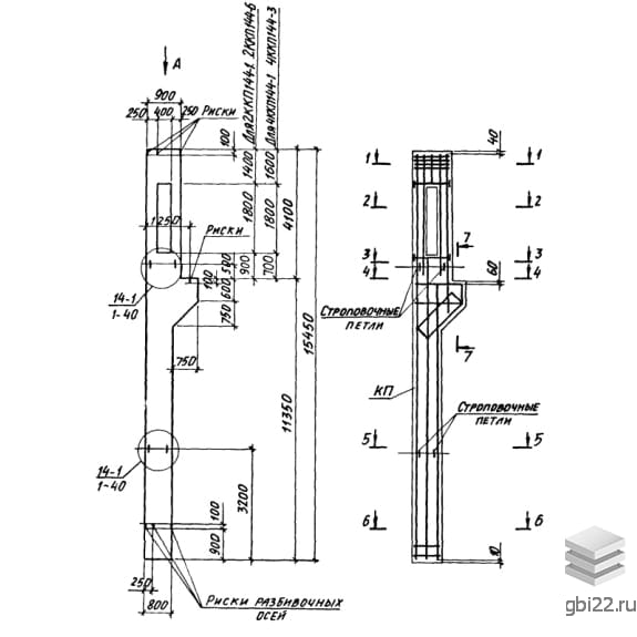 | Название стандарта | Колонны железобетонные прямоугольного сечения с проходами в уровне крановых путей для одноэтажных производственных зданий высотой 10,8-14,4 м, оборудованных мостовыми опорными кранами грузоподъемностью до 32 т. |