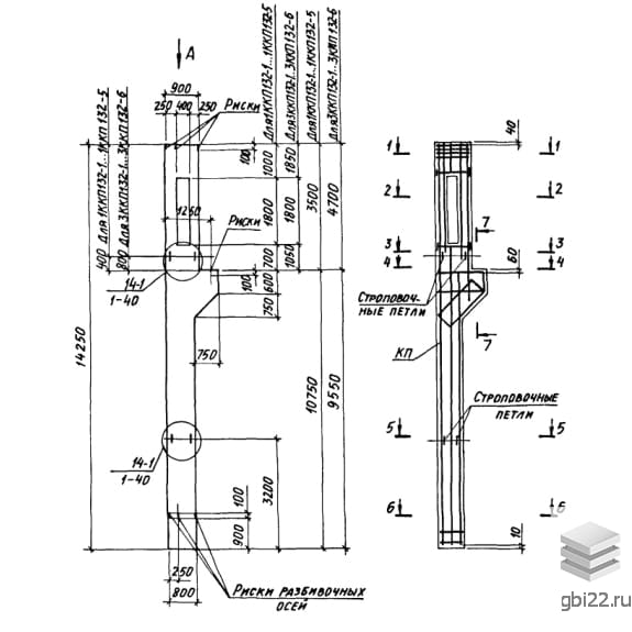 | Название стандарта | Колонны железобетонные прямоугольного сечения с проходами в уровне крановых путей для одноэтажных производственных зданий высотой 10,8-14,4 м, оборудованных мостовыми опорными кранами грузоподъемностью до 32 т. |