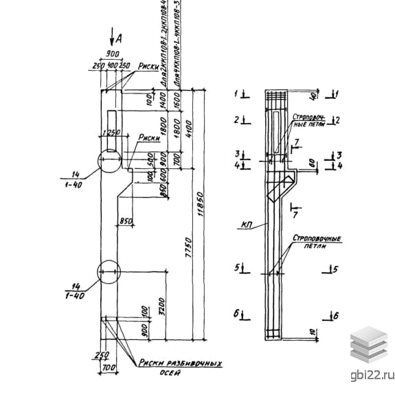 | Название стандарта | Колонны железобетонные прямоугольного сечения с проходами в уровне крановых путей для одноэтажных производственных зданий высотой 10,8-14,4 м, оборудованных мостовыми опорными кранами грузоподъемностью до 32 т. |