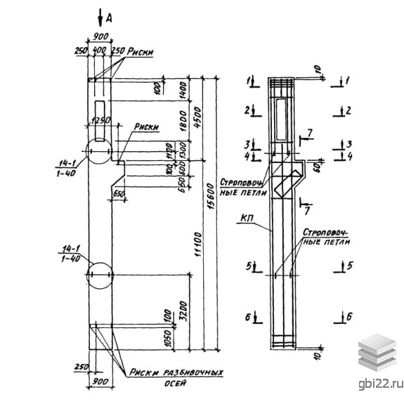 | Название стандарта | Колонны железобетонные прямоугольного сечения с проходами в уровне крановых путей для одноэтажных производственных зданий высотой 10,8-14,4 м, оборудованных мостовыми опорными кранами грузоподъемностью до 32 т. |
