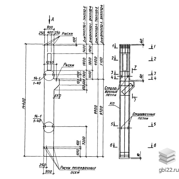 | Название стандарта | Колонны железобетонные прямоугольного сечения с проходами в уровне крановых путей для одноэтажных производственных зданий высотой 10,8-14,4 м, оборудованных мостовыми опорными кранами грузоподъемностью до 32 т. |