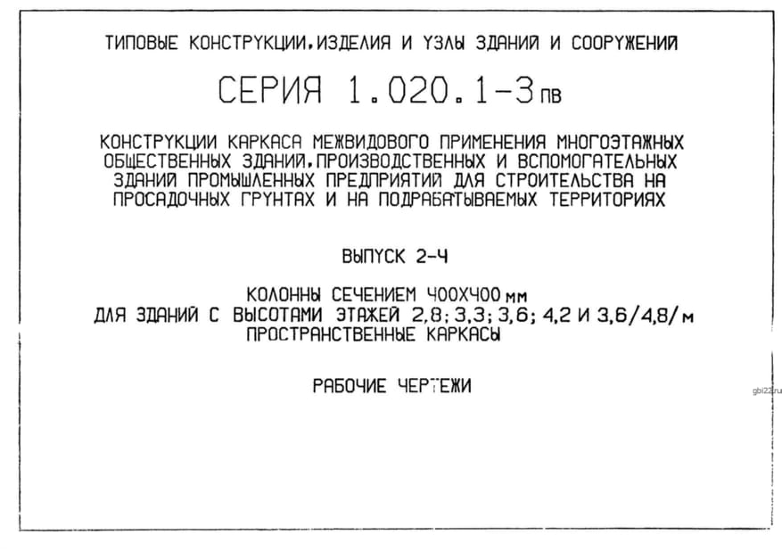 | Название стандарта | Конструкции каркаса межвидового применения многоэтажных общественных зданий производственных и вспомогательных зданий промышленных предприятий для строительства на просадочных грунтах и на подрабатываемых территориях. |