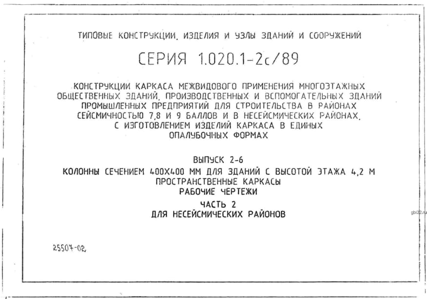 | Название стандарта | Конструкции каркаса межвидового применения многоэтажных общественных зданий, производственных и вспомогательных зданий промышленных предприятий для строительства в районах сейсмичностью 7, 8, 9 баллов и в несейсмических районах с изготовлением изделий кар |