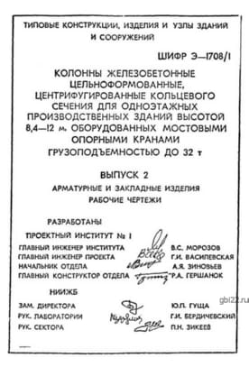 Колонны железобетонные цельноформованные, центрифугированные кольцевого сечения для одноэтажных производственных зданий высотой 8,4 - 12 м, оборудованных мостовыми опорными кранами грузоподъемностью до 32 т.