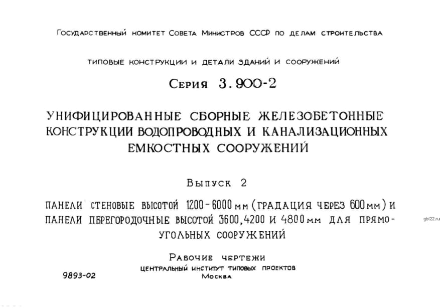 | Название стандарта | Унифицированные сборные железобетонные конструкции водопроводных и канализационных емкостных сооружений. |