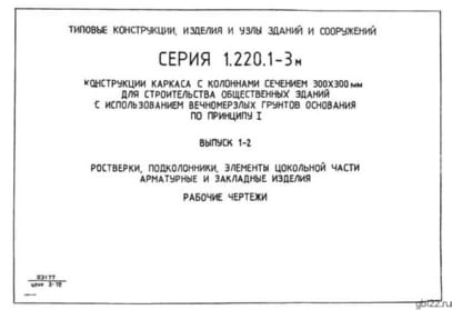 | Название стандарта | Конструкции каркаса с колоннами сечением 300х300 мм для строительства общественных зданий с использованием вечномерзлых грунтов основания по принципу 1. |