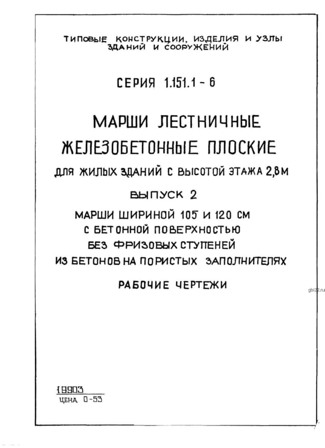 Марши лестничные железобетонные плоские для жилых зданий с высотой этажа 2,8 м.