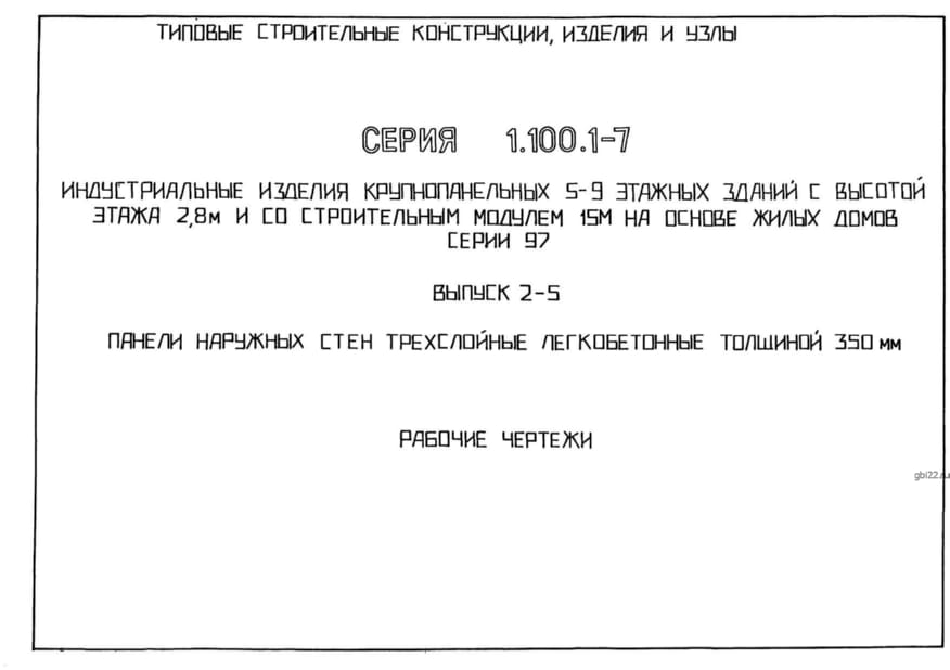 | Название стандарта | Индустриальные изделия крупнопанельных 5 – 9 этажных зданий с высотой этажа 2,8 м и со строительным модулем 15 м на основе жилых домов серии 97. Выпуск 0. Состав серии. Материалы для проектирования. |