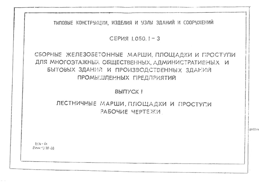 | Название стандарта | Сборные железобетонные марши, площадки и проступи для многоэтажных общественных, административных и бытовых зданий и производственных зданий промышленных предприятий. |