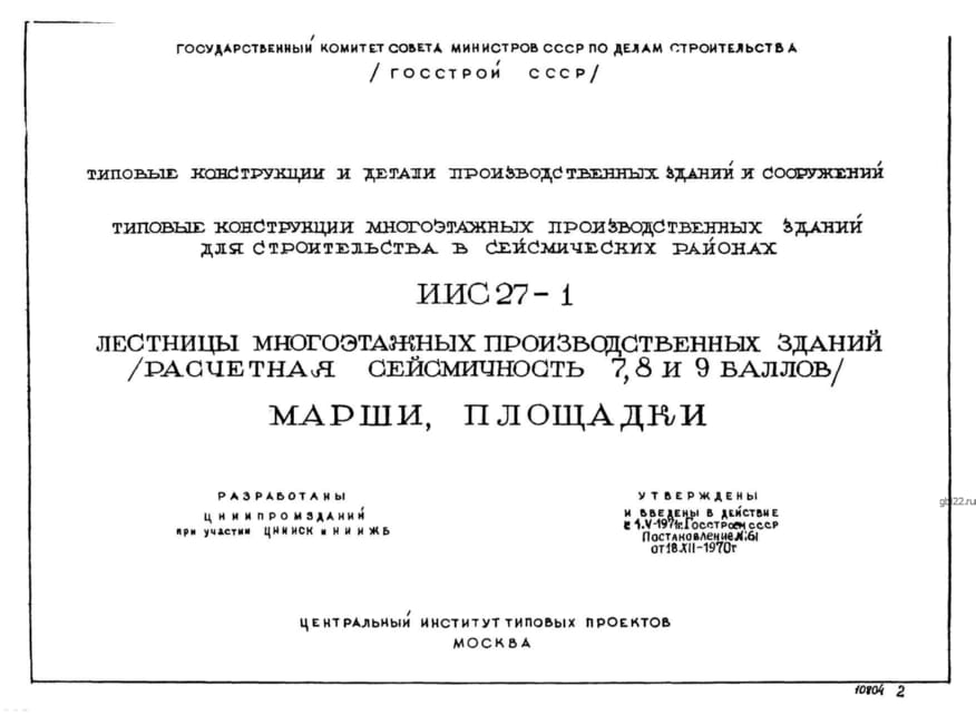 | Название стандарта | Лестницы многоэтажных производственных зданий (расчетная сейсмичность 7, 8 и 9 баллов). Марши, площадки. |