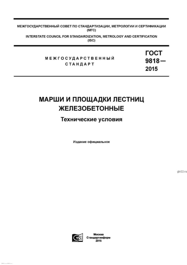 | Название стандарта | Марши и площадки лестниц железобетонные. Технические условия. |