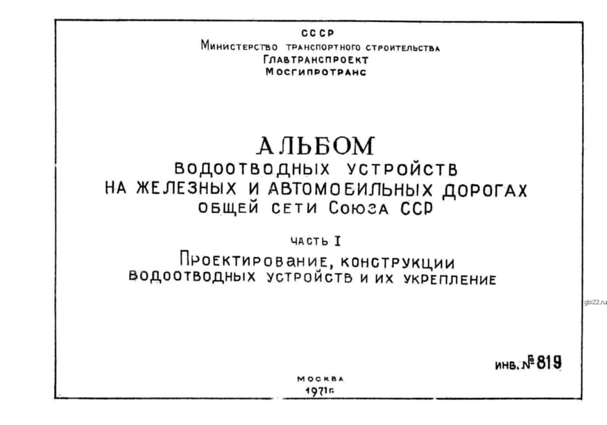 | Название стандарта | Альбом водоотводных устройств на железных и автомобильных дорогах общей сети Союза ССР |