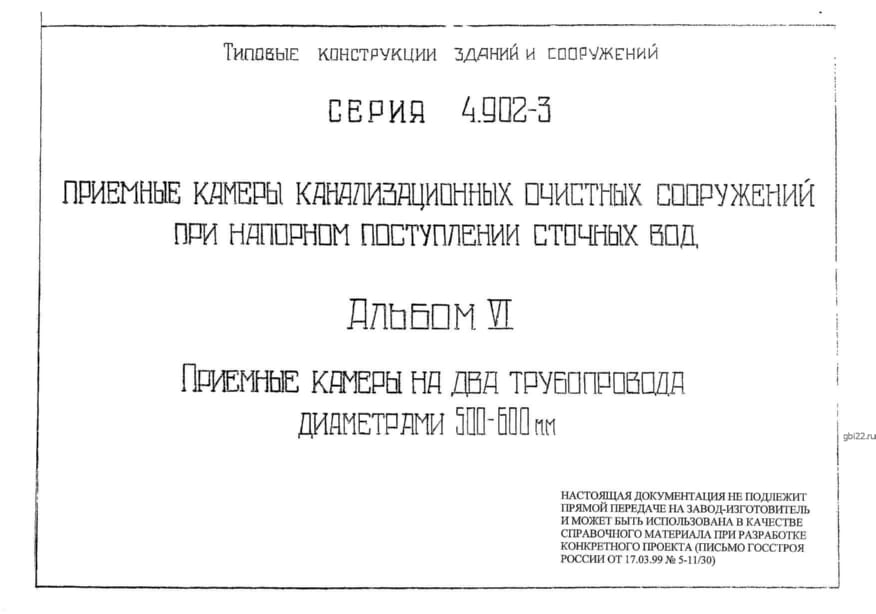 | Название стандарта | Приемные камеры канализационных очистных сооружений при напорном поступлении сточных вод. |