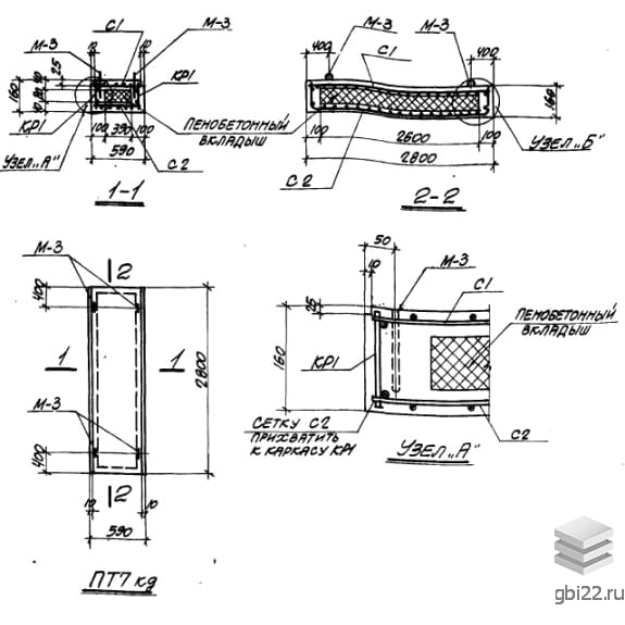 Сборные железобетонные элементы каналов высотой 1500, 1800 и 2100 мм. Рабочие чертежи.